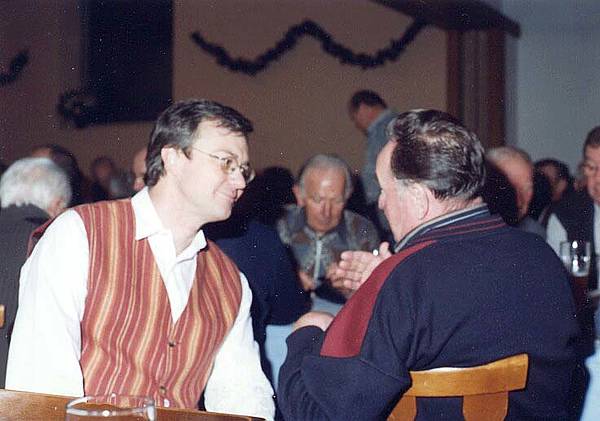 1. Vereinsvorstand Georg Feuerer im Gespräch mit einem ehemaligen Zivilangestellten bei der US-Army in Augsburg.