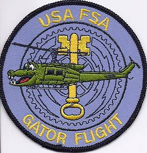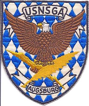 Zwei Beispiele inoffizieller aber getragener Abzeichen: links das der Heeresflieger „Gator Flight“ von der Field Station Augsburg-Gablingen (Flight Detachment). Rechts ein bayerisch verklärtes Emblem der U.S. Naval Security Group Activity Augsburg USNSGA. Diese Marineeinheit war von 1973 bis April 1996 in der Field Station Gablingen. Ihr Wohnsitz war das Bldg 117 in der Sheridan Kaserne.