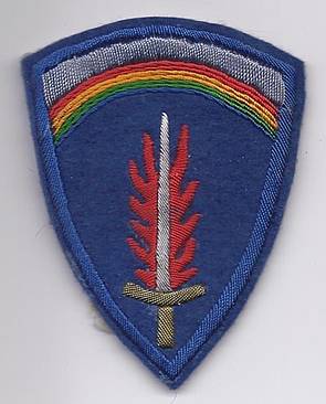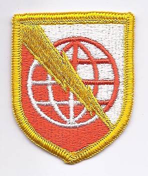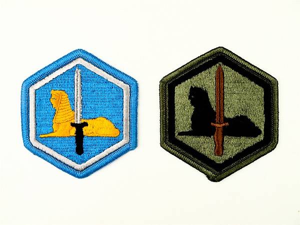 Die 66th Military Intelligence Brigade hatte von 1992/93 bis Juli 1995 ein eigenes Abzeichen (Sphinx mit Dolch). Hier ebenfalls eine getarnte Ausführung zum offiziellen Uniformaufnäher in Farbe.