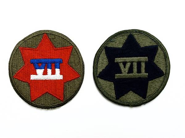 Von Ende 1951 bis April 1992 unterstanden die meisten Augsburger Einheiten dem VII US-Corps. Danach wurde dieses aufgelöst, die noch in Augsburg befindlichen Verbände wurden dem V Corps unterstellt. Das Abzeichen rechts zeigt die getarnte Ausführung des Signets.