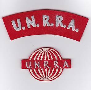 Zwei außergewöhnliche Funktionsabzeichen am Rande der militärischen Operationen in den Nachkriegsjahren: links für das Personal der UN-Nothilfe und Verwaltung für Wiederaufbau UNRRA (United Nations Relief and Rehabilitation Administration), rechts eine Kennzeichnung für offizielle Dolmetscher, die insbesondere den amerikanischen Angehörigen bei ihrer Anwesenheit und Ankunft in Deutschland behilflich waren, aber auch für behördliche Vorgänge (z. B. Verhöre) benötigt wurden.
