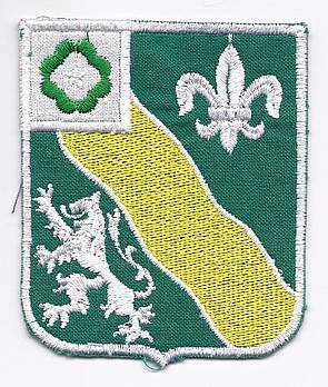 Links: Von April 1970 bis ca. 1977 ersetzten Teile der 1st Infantry Division "The Big Red One" die in die USA zurückverlegte 24th Infantry Division. Rechts: Von 1978 bis Anfang 1992 gehörten die anwesenden Artillerieeinheiten zur 17th Field Artillery Brigade mit dem rotgoldenen Artillerie-Abzeichen. Bis dahin unterstanden Artillerieeinheiten direkt einer Division oder dem VII Corps.