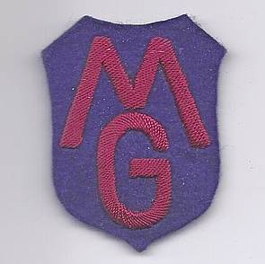 Links: Die amerikanische Militärregierung (U.S. Military Government) zeichnete sich bis etwa 1950 mit einem eigenen Abzeichen (MG) aus. Rechts: Von Anfang 1947 bis August 1950 erhielt das nicht amerikanische Personal der Industriepolizei ein Erkennungszeichen, danach wurde sie dem Labor Service mit seinen eigenen Labels unterstellt.