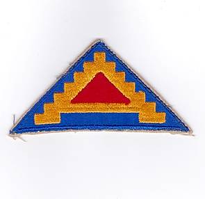 Links: Am 28. April 1945 besetzte die 3rd Infantry Division der 7. US-Armee für wenige Tage die Stadt Augsburg und befreite sie von der NS-Diktatur. Zwischen 1977 und 1983 stationierte diese Division in Augsburg das dritte Bataillon des 63. Panzerregiments (3rd/ 63rd Armor). Rechts: Das Hauptquartier der 7. US-Armee befand sich von Mai bis Juni 1945 im Westen Augsburgs. Später unterstanden diverse Einheiten direkt der „Seventh Army“ mit ihrem treppenartigen Symbol (sieben Stufen und ein stilisiertes A für Army). Die Farben präsentieren die Infanterie (blau), die Artillerie (rot) und die Panzertruppe (gelb).