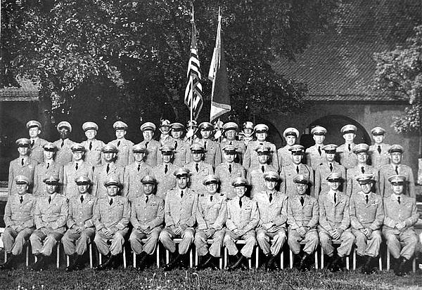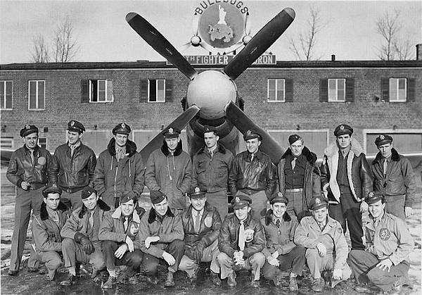 Piloten des 354th Fighter Squadron in Gablingen vor dem Feuerwehrhaus, Anfang 1946 (Foto: Robert Westerveld).