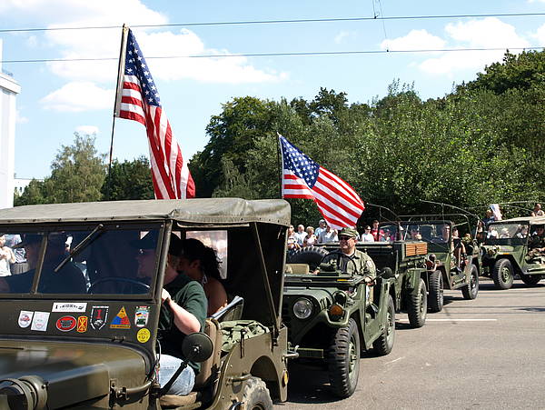 In die Color-Parade der US-Soldaten reihten sich auch ein U.S. Lastwagen, der einem Mitglied von Amerika in Augsburg e.V. gehört, die Militärhistoriker „Living History Society“ aus Erding und die Zusamtaler Military Oldtimerfreunde samt ihren Jeeps und anderen U.S. Militärfahrzeugen mit ein.