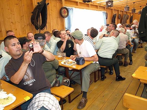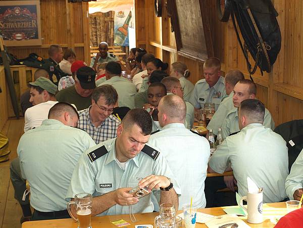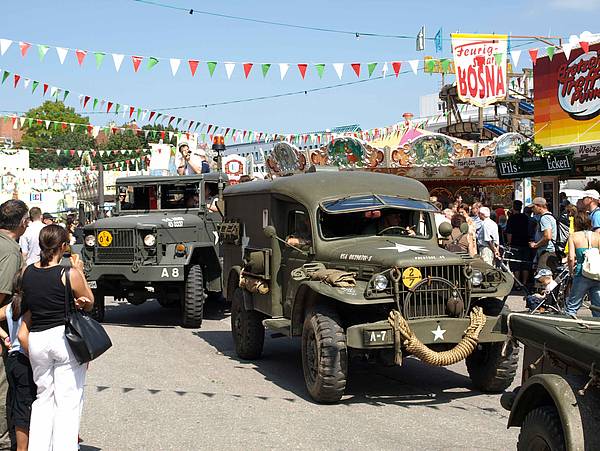 After a guided tour thru the city and a Bavarian Leberkäs´ break, the Color Guard and a presentation of historical vehicles and uniforms marched trough the heart of the City to the Plärrer fair area. In an impressive way, the "Reenactors" demonstrated the end of the war by distributing chewing gum to the kids along the roadsides.