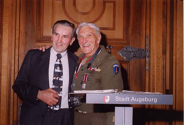 Dem Verein Amerika in Augsburg e.V. war es eine große Ehre, den neun betagten Veteranen der „letzten und ersten Stunde“ eine willkommene Geste der friedvollen Völkerverständigung zu vermitteln. Unter den z.T. in Originaluniformen anwesenden Ex-Soldaten war auch „Mickey“ Mason Hardin Dorsey, der -neunzehnjährig- 1945/46 in der Flak Kaserne bei der 71st Infantry Division als „Proviantmanager“ Dienst tat und in Waldberg bei Augsburg sehr freundschaftliche Beziehungen zu einer dortigen Familie pflegte.