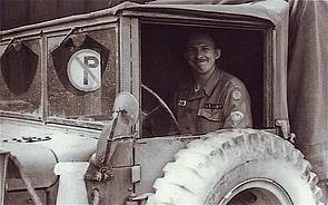 Bild unten links: GI James Morgan auf Dienstfahrt im Haunstetter Wald.