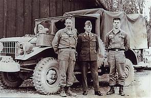 Bild unten rechts: Werner Luthard (Mitte), Stabsunteroffizier der Luftwaffe in Lagerlechfeld, mit James Morgan (rechts) und einem anderen US-Soldaten. W. Luthard verstarb 2007 in Haunstetten.