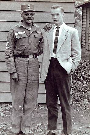 Bild rechts: Deutsch-Amerikanische Freundschaft in frühesten Jahren: GI Graham und Werner Luthard aus Haunstetten am Schießplatz.