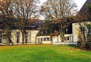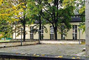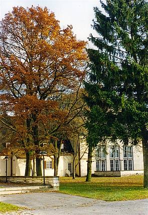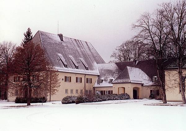 Ein Blick von der westlich gelegenen Wiese zeigt das Gebäude vor allem im warmen Licht der Abendsonne von seiner ganzen stolzen Ausdruckskraft. Im Norden fügten die Amerikaner schon 1952 eine Erweiterung in Form eines Ball-, Speise- und Theatersaales samt Großküche hinzu, der sich architektonisch unauffällig und homogen an die historische Bausubstanz anbindet. So nutzten die Amerikaner weiterhin den Komplex für repräsentative Empfänge und Veranstaltungen unter Militärs oder auch mit Zivilisten aus der deutschen Politik und Gesellschaft.