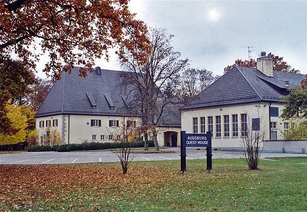 Von welcher Seite man auch auf das Gebäude blickt, es zeigt sich immer wieder in einer anderen schlichten, klar gegliederten Geometrie von stiller Erhabenheit. Vielleicht konnte gerade dieser Ort dazu beigetragen, daß sich die amerikanischen Truppen hier in Augsburg besonders wohl fühlten...?