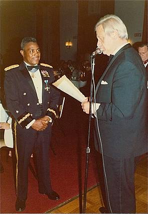 Augsburg, Königsplatz, August 1975: Nur seine dunkle Hautfarbe unterschied einen der treuesten Stammgäste der damaligen "Sieben-Schwaben-Stuben" (Wirt: Willy Ost) von den "Einheimischen". Der 45jährige Brigadier General Charles C. Rogers, oberster Chef der US-Truppen zwischen Stuttgart und Augsburg, sprach nicht nur fast akzentfrei unsere Sprache, er kannte sich auch über Land und Leute aus und hatte eine Vorliebe für schwäbische Essensspezialitäten. Zusammen mit seiner Familie war er regelmäßig Gast in dem Speiselokal am Königsplatz.