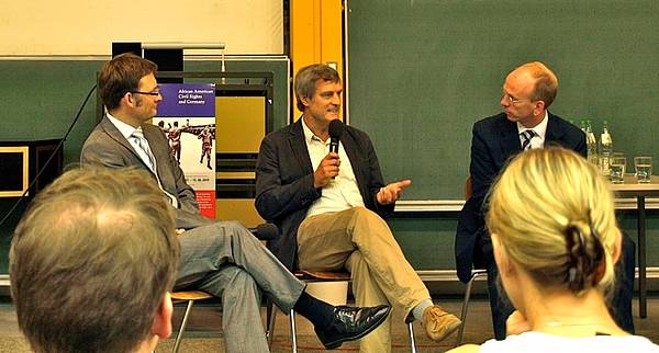 Dr. Markus Günther, chief editor of the newspaper “Augsburger Allgemeine”, presented the following panel discussion about the future of the transatlantic relationship with the American Consul General from Munich, Mr. Conrad R. Tribble, Dr. Christian Ruck and Ms. Claudia Roth (both Members of Parliament), as well as Augsburg University’s Prof. Dr. Philipp Gassert (Chair of European-Transatlantic History) and Prof. Dr. Hubert Zapf (Chair of Americana).