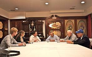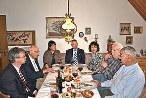 Links: Dinner im privaten Kreis. Rechts: Interview mit Studenten der Universität Augsburg im Hotel.