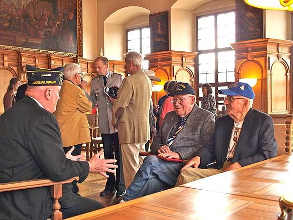 Unter sich: Gespräch zwischen einem in Augsburg verbliebenen US-Soldaten und den Kriegsveteranen der 3rd Infantry Division.