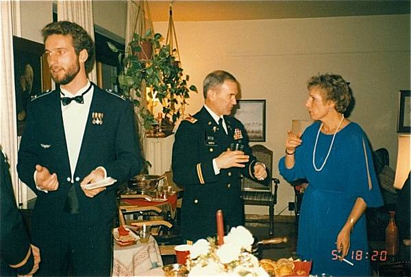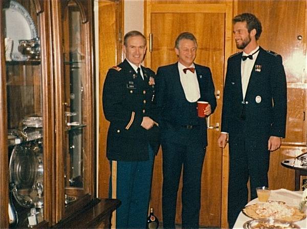 Verabschiedungsfeier von COL Boyd, 1984, im Sheridan Club. Bildmitte: BG Eckelbarger im Gespräch mit Heinz Strüber vom DEH.
