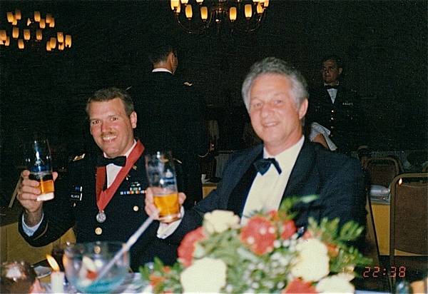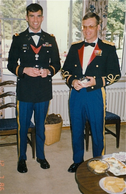 In der Gala-Uniform der Field Artillery. Rechts: LTC Ross L. Nagy, Bataillonskommandeur (ab 1986 bis 1988) mit einem seiner Battery Commander.
