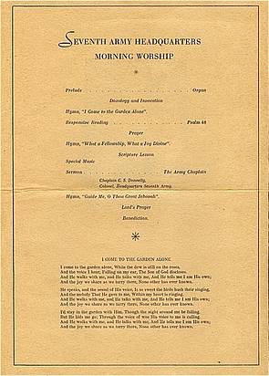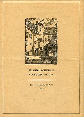 Unmittelbar nach Kriegsende bemühten sich die amerikanischen Siegestruppen bereits um die Neubelebung religiöser Aktivitäten. Schon einen Tag später, am 29. April 1945, hielt die U.S. Army einen Feldgottesdienst in der St. Anna Kirche ab. Am folgenden 6. Mai fand dort wieder ein Sieges- und Dankesgottesdienst statt, in dem Army Chaplain S. Donnelly eine Erklärung verlas. Eine Woche später gedachte man in einem großen Gottesdienst dem europaweiten Sieg der Alliierten. Am 20. Mai 1945 versammelten sich rund 1200 US-Soldaten zu einem Gottesdienst bei St. Anna. Weiterhin wurden durch das Hauptquartier der 7. US-Armee Friedensgottesdienste abgehalten, wie in Filmen vom 30. Mai 1945 festgehalten (Army Pictorial Center NY). Ebenso belegt dies ein vorliegendes Originalpapier vom Sonntag Morgen, 17. Juni 1945 aus der St. Anna Kirche. Bis Februar 1946 war auch der Chor der zu dieser Zeit anwesenden 71st Infantry Division in den großen Augsburger Kirchen aktiv.