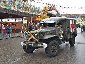 Links: Historischer Sanitätswagen aus den 40er Jahren