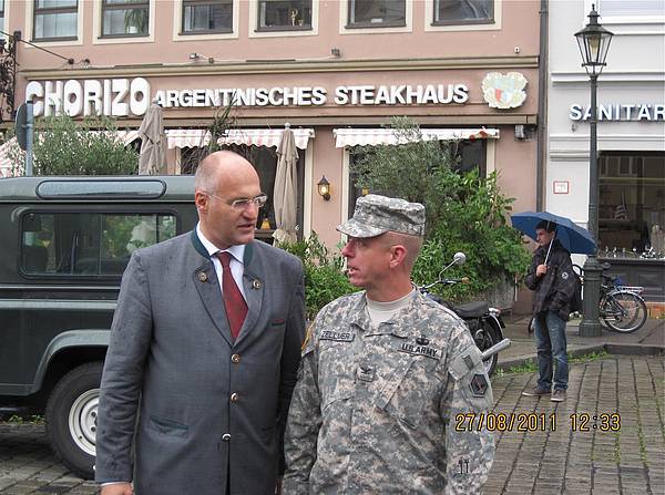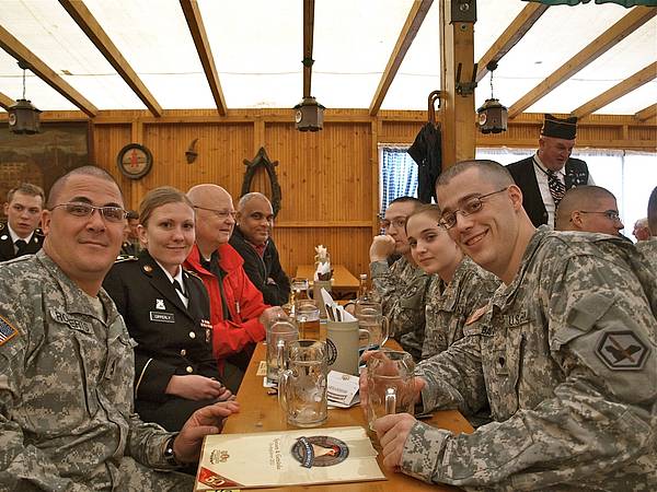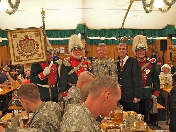 Im anschließend besuchten Bierzelt erhielten die Gäste nicht nur eine bayerisch-deftige Stärkung, es entwickelten sich dort auch viele spontane Szenen der Herzlichkeit und gegenseitigen Verständigung. COL Zellmer bedankte sich bei der Abfahrt für die Gastfreundschaft, die ihm und seiner Mannschaft hier in Augsburg entgegen gebracht wurde. Vereinsvorsitzender Georg Feuerer drückte ebenso seine Freude über das Engagement der amerikanischen Abordnung aus, die für Augsburg einen langen und strapaziösen Reisetag auf sich nahm.