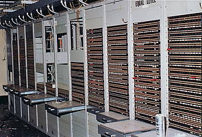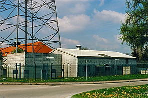 Außen- und Innenansicht des stark gesicherten Funkturm-Technikraumes.