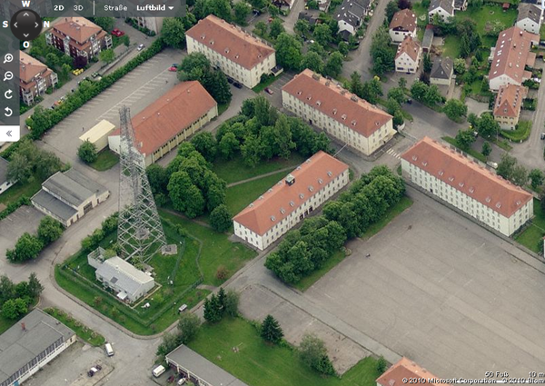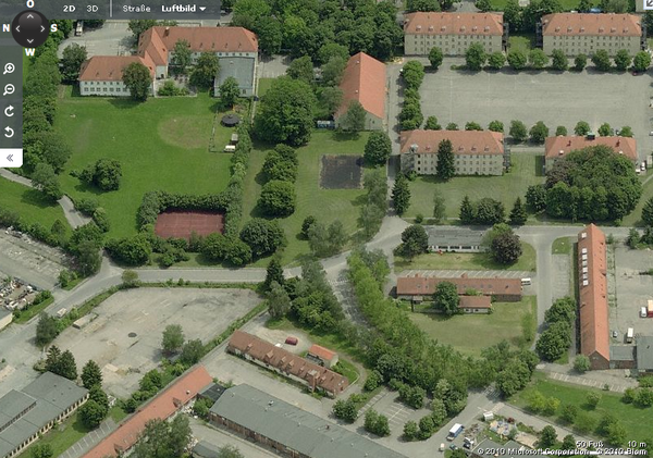 Sicht auf den östlichen Reese-Teil mit Tennisplatz, Kino und Recreation Center (ehem. Somme-Kaserne).
