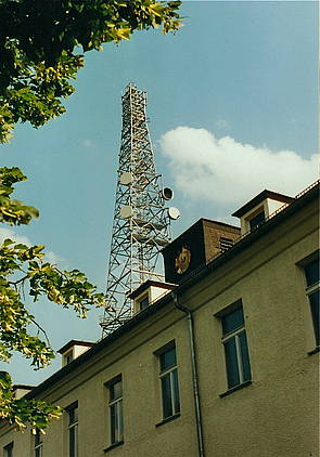 Wie ein erhobener Zeigefinger zeigte sich der filigrane Richtfunk-Gittermastturm überall in der Reese Kaserne. Die beiden Schüsselpaare waren nach Bonstetten und Gablingen gerichtet. Ein Rundstrahler sendete das Münchener AFN-Programm über 100 MHz, an der Spitze der Fernsehsender für die Augsburger US-Community.