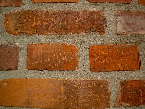 Hawaii, Idaho, Montana, Texas und andere. An der Klinkerwand der Reese-Wäscherei verewigten sich die GIs mit ihren amerikanischen Herkunftsstaaten. (Foto: Uni Augsburg).
