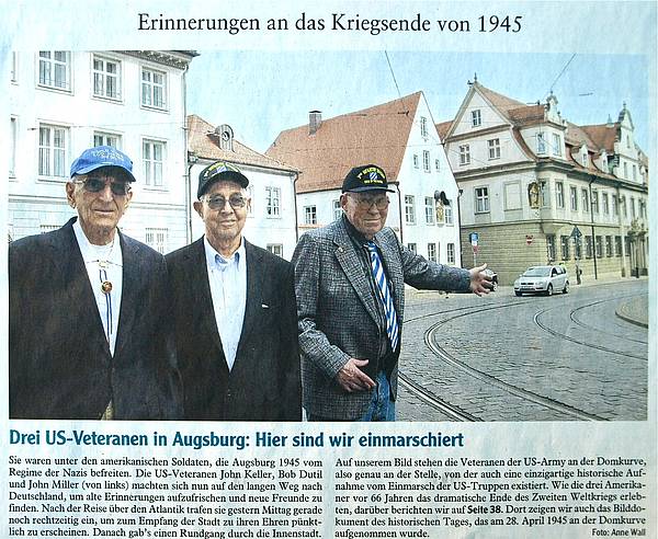 Am 28. April 2011 waren drei Veteranen der 3rd Infantry Division der U.S. Army – jene Einheit, die an der Befreiung der Stadt Augsburg im April 1945 beteiligt war – zu Besuch in Augsburg. Im Rahmen eines Oral-History-Projekts zur Erforschung der Augsburger US-Militärpräsenz hatten drei Mitarbeiter des Lehrstuhls für Transatlantische Kulturgeschichte der Universität Augsburg die Möglichkeit, mit den Veteranen über deren Erfahrungen während ihrer Zeit in Deutschland, Bayern und Augsburg zu sprechen.
