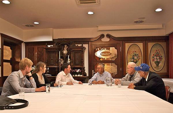 Trotz der langen Reise und des dichten Besuchsprogramms nahmen sich die ehemaligen US-Soldaten Bob Dutil, John Keller und John Miller die Zeit für ein Interview und brachten dem Forschungsvorhaben großes Interesse entgegen. Am Abend fanden sich die Interviewer der Universität, die Veteranen, deren Reiseleiter und Mitglieder des Vereins Amerika in Augsburg e.V. im Konferenzsaal des Hotels Alpenhof ein. Nachdem man sich kennengelernt hatte und die Befangenheit der ersten Begegnung gelöst war, zeigten sich die Veteranen als äußerst gesprächsbereit, gaben aufschlussreiche Einblicke in ihr Leben und ihre Zeit als junge Soldaten in Deutschland.