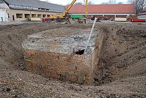 Rechts: Beim Abriß der Sporthalle zum Vorschein gekommen: ein Wehrmachtsbunker mit meterdicker Betondecke.