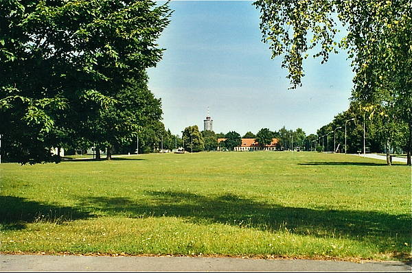Links: Südwestecke mit kleinem Richtfunkturm und TÜV-Gebäude (hinten rechts).