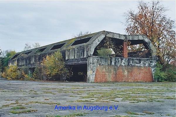 Der legendäre "Bunker" prägte über Jahrzehnte das Erscheinungsbild der südlichen Sheridan Kaserne und die Erinnerungen der US-Soldaten und Soldatinnen, der dortigen Zivilangestellten und vieler Augsburger Bürger. Er war das Fragment einer mißglückten Ruinensprengung, die mit Rücksicht auf die benachbarten Wohngebiete nicht im erforderlichen Ausmaß durchgeführt werden konnte. Zu fest und gigantisch waren die Betonmassen der langgezogenen Garagenhalle, eine der fünf in der einstigen Wehrmachts-Luftnachrichtenkaserne. Trotzdem gab es jede Menge zerbrochener Fensterscheiben.