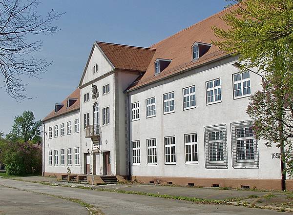 Rechts: Ehemalige Kantine/Mess Hall, später Verwaltungsgebäude (Geb.153), siehe auch unten.