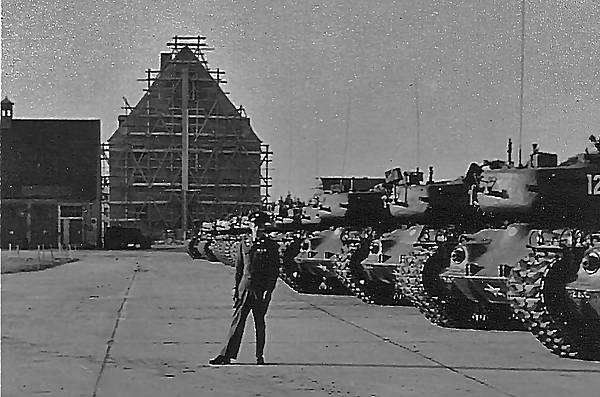 Um 1951: M26 Pershing Panzer der Constabularys vor Geb.146, damals noch nicht fertiggestellt (Foto: Del Tergo).