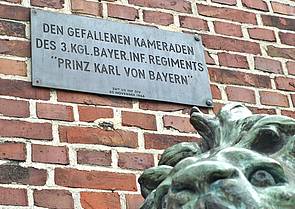 Eine historische Besonderheit war den Amerikanern durchaus nicht im Wege: In der Mitte des Geländes stand das ringförmige, aus Backsteinziegeln gemauerte Löwendenkmal zu Ehren der Gefallenen des 3. Kgl. Bayer. Infanterie-Regiments 1914/1918. Es wurde nach einer Restaurierung und Ummauerung 1933 erneut eingeweiht, erstellt hatte man es ursprünglich schon 1898. Der bronzene Löwe befand sich bereits von Anfang an auf dem Paradeplatz, wurde jedoch für den Ersten Weltkrieg zur Metallgewinnung in mehrereTeile zerschnitten und sollte zur Einschmelzung gelangen. Dies blieb ihm aus fernen Gründen erspart, was ihm zu neuem Leben verhalf.