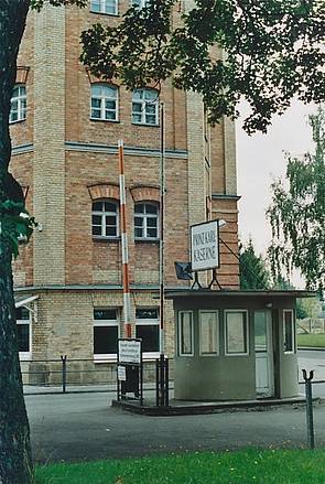 Der südliche Unterkunftsblock an der Schertlinstraße (Geb. 301) mit dem Haupttor.