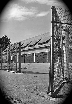 Nach Beendigung der Diskussion fand eine Vor-Ort-Begehung des im Sheridan-Gelände angedachten "Friedens-Lernortes" statt. Dieser soll sowohl dem Gedenken der in in den Fahrzeughallen im letzten Kriegsjahr untergebrachten Zwangsarbeiter, wie auch der Demokratisierung in der Zeit der amerikanischen Präsenz von 1945 bis 1998 gerecht werden.