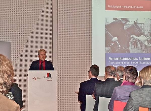 Vom 15. bis zum 17. März 2012 führte die Universität Augsburg eine wissenschaftliche Tagung unter dem Thema "Amerika in Augsburg - Aneignungen und globale Verflechtungen in einer Stadt" durch. Maßgebend beteiligt waren das Institut für Europäische Kulturgeschichte, der Lehrstuhl für die Geschichte des europäisch-transatlantischen Kulturraumes sowie der Lehrstuhl für Neuere und Neueste Geschichte unter der wissenschaftlichen Leitung von Prof. Dr. Philipp Gassert, Prof. Dr. Günther Kronenbitter und Prof. Dr. Wolfgang E.J. Weber. Die Schirmherrschaft übernahm der Oberbürgermeister der Stadt Augsburg, Dr. Kurt Gribl.