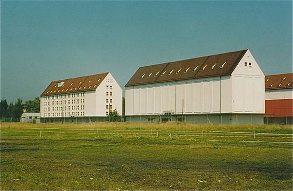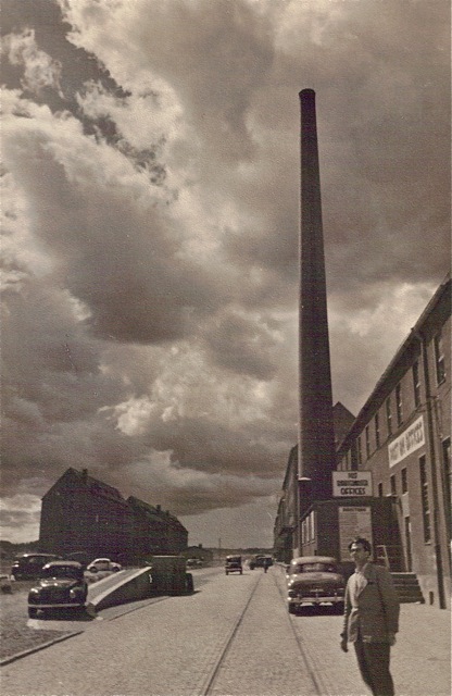 Das Versorgungsensemble Anfang der 1950er Jahre nach Westen gesehen. Im Vordergrund der Kamin der ehemaligen Heeresbäckerei (Foto: via Reise House).