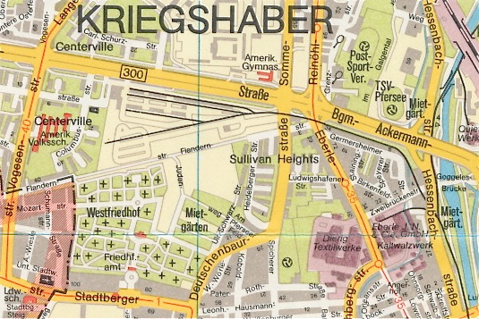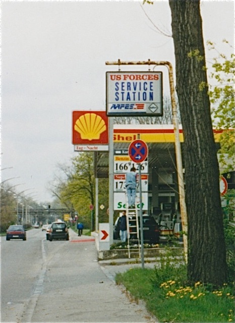 Hinweisschild zur Einfahrt der amerikanischen Service-Station an der Bgm.-Ackermann-Straße.