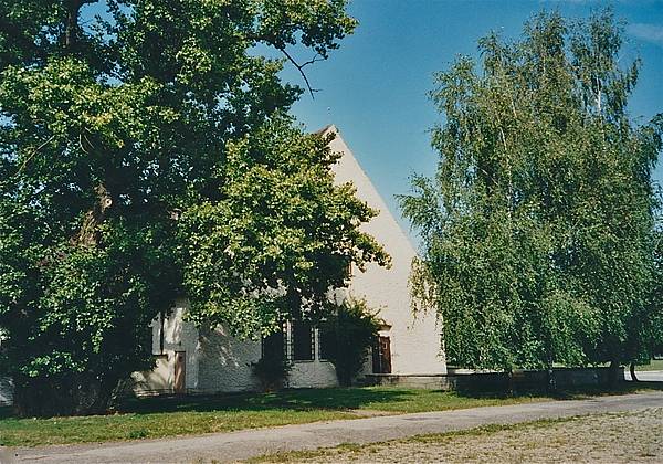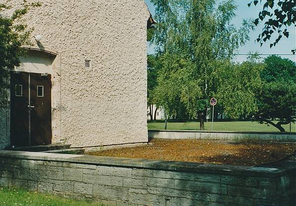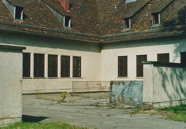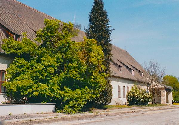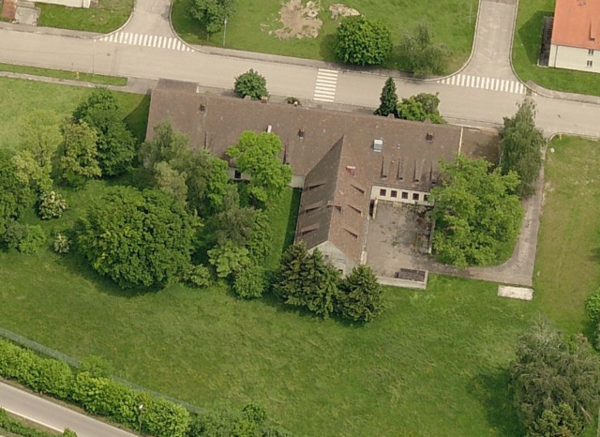 Rückseite mit abgemauertem Innenhof für die Anlieferung (Südwesten).