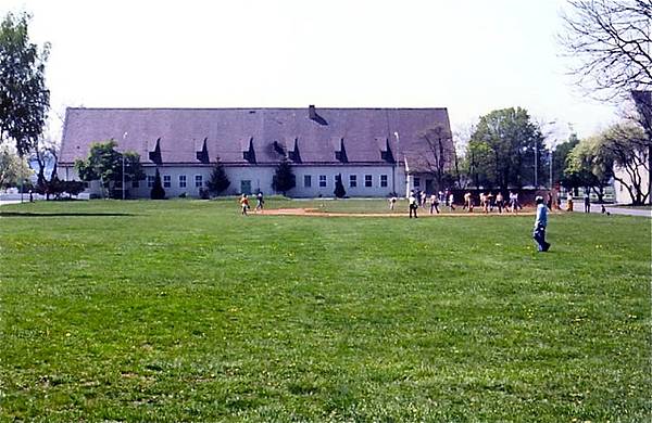 For decades, Mess Hall Bldg 118, called “Bavaria House”, was a meeting-place of the soldiers of Sheridan Kaserne. The building, constructed in the typical NS architectural style in 1936/37, was later surrounded by deciduous trees. Located at the perimeter of Dawson Field, it provided a great view across the vast lawn area in front of the building vs. east (> Bldg 134, originally another a Mess Hall, later the Child Care Center). This lawn area, once also an emergency flight strip of the Wehrmacht, was basically utilized as a sports and parade field by the Army.