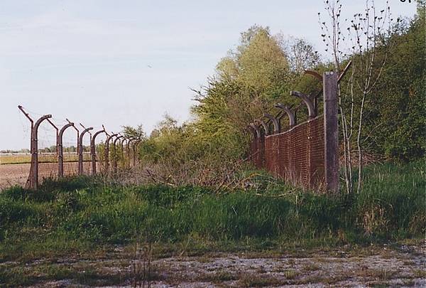 Der Sicherheitsstreifen mit doppeltem Zaun. Rechts einer der Erdwälle.