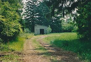 Einfache Munitionshäuschen im größeren Waldteil. Er wurde bereits um 1950 angelegt.