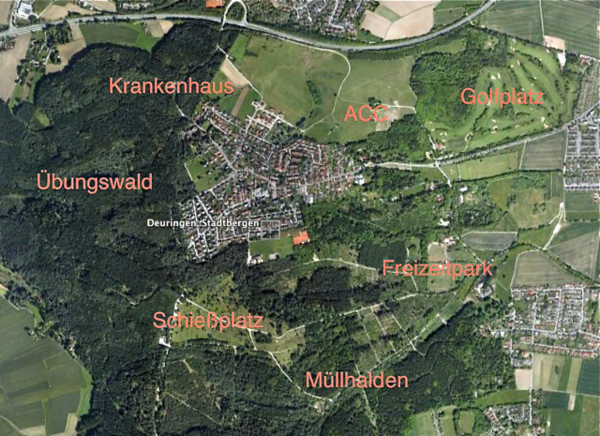 Über die Ortsstraßen Deuringens rollten über Jahre hinweg die schweren Militärfahrzeuge und Panzer. Ausbesserungsarbeiten nahmen kein Ende, und selbst eine frisch asphaltierte Fahrbahn soll einmal von den US-Truppen bei NATO-Alarm gedankenlos überrollt worden sein. Staub- und Abgaswolken umhüllten den kleinen Ort. Der damalige Bürgermeister von Deuringen hatte wahrlich kein Leichtes, sich über die politischen Instanzen Hilfe zu verschaffen. Die Sachlage spitzte sich auch insofern zu, wie am nördlichen Ortsrand die dortige Waldhausklinik den Belastungen und Immissionen des Manöverbetriebs hilflos ausgesetzt war. Man beabsichtigte sogar später eine Panzerstraße im Wald direkt am Krankenhaus vorbeizuführen, was aber im baulichen Anfangsstadium stecken blieb. Zu heftig waren die sich Anfang 1984 zuspitzenden Auseinandersetzungen zwischen Militär, Kommunalpolitik und Bevölkerung. Ebenso befanden sich Altenheime in der Umgebung.
