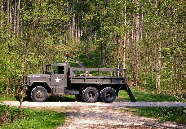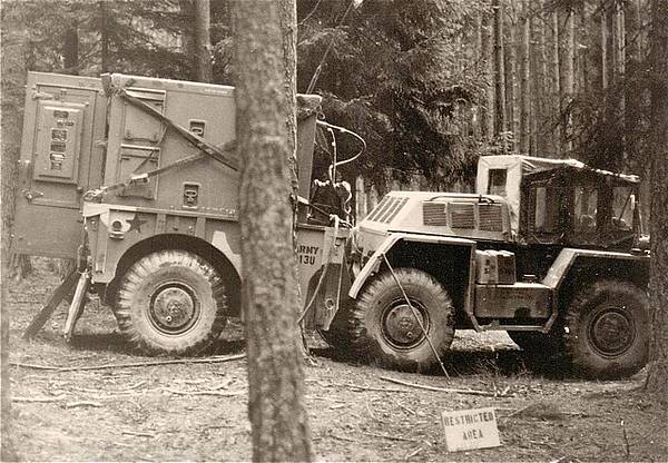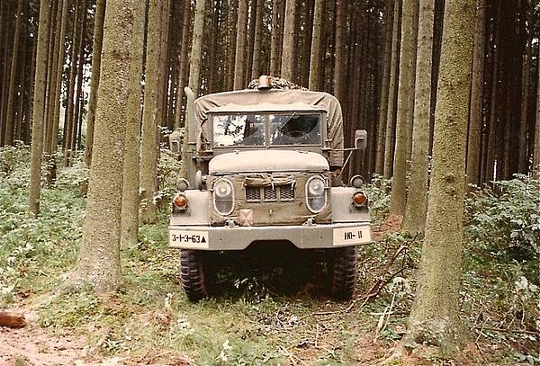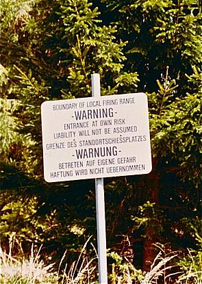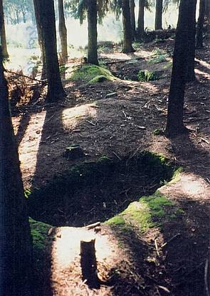 LKWs, Warnschilder und Schützenlöcher im Deuringer Wald.