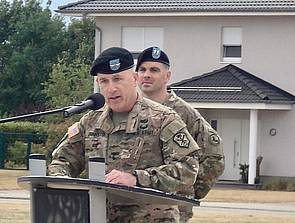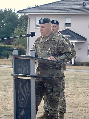 Der neue Commander COL Bryan Hooper am Rednerpult.